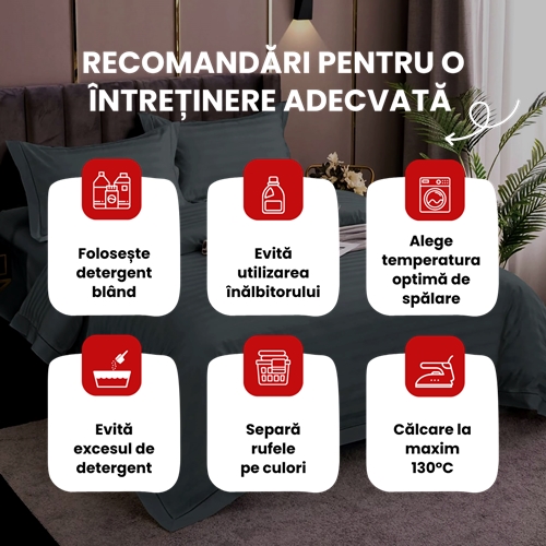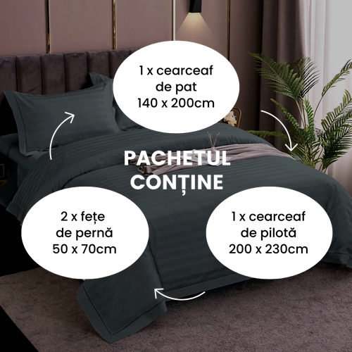 - Fete de perna (50x70cm): Setul include doua fete de perna, perfecte pentru a completa aspectul patului tau si pentru a-ti asigura un somn odihnitor si confortabil.