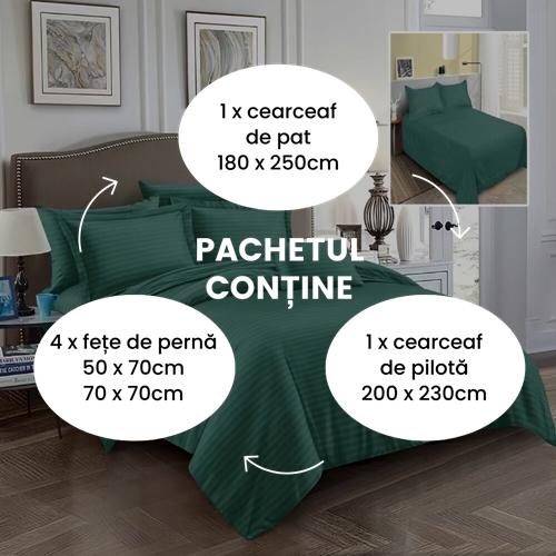 Descopera eleganta si calitatea in lenjeria de pat damasc policoton verde cu 6 piese