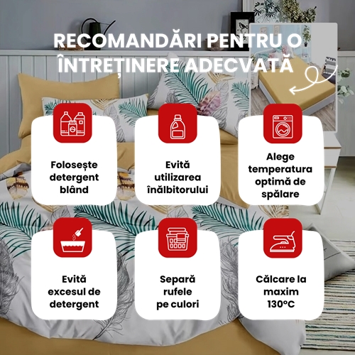 - Se recomanda spalarea lenjeriei inainte de prima utilizare, in conformitate cu instructiunile de pe eticheta.