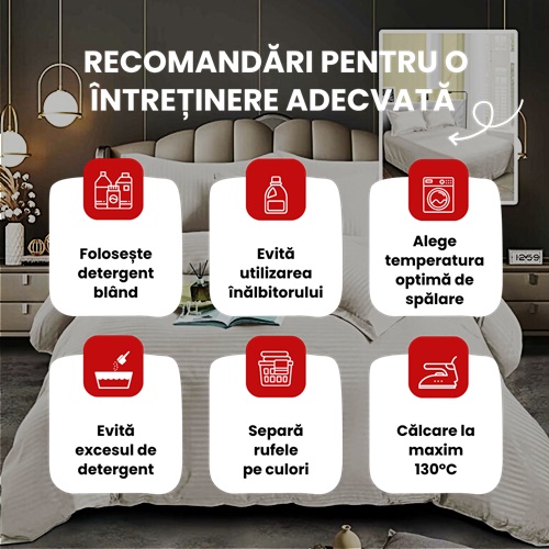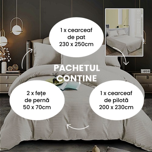 Aceasta lenjerie de pat este ideala atat pentru uz personal, cat si pentru a fi oferita cadou, aducand un echilibru perfect intre functionalitate si estetica. Fiecare piesa este conceputa pentru a oferi un somn odihnitor si o experienta de relaxare deosebita, intr-un decor elegant si rafinat.
