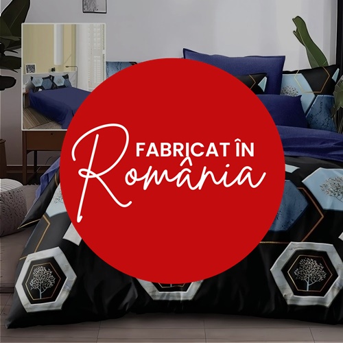 Lenjerie de pat dublu, finet, 6 piese, cearceaf pat 220x240cm, cearceaf pilota 200x230cm, 2 fete de perna 50x70 si 2 fete de perna 70x70cm, Pucioasa, RA557