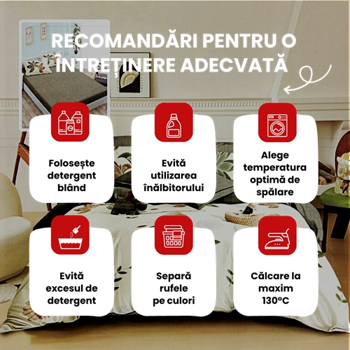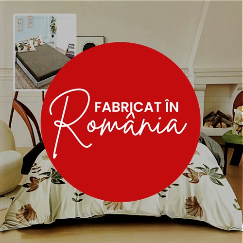 Lenjerie de pat dublu, finet, 6 piese, cearceaf pat cu elastic 180x200cm, cearceaf pilota 200x230cm, 2 fete de perna 50x70 si 2 fete de perna 70x70cm, Pucioasa, RAH180-199