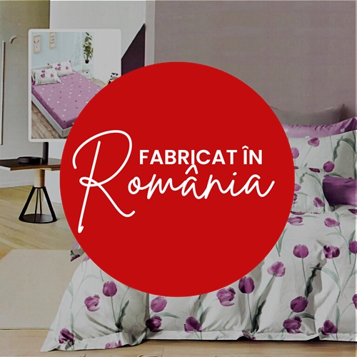 Lenjerie de pat dublu, finet, 6 piese, cearceaf pat cu elastic 180x200cm, cearceaf pilota 200x230cm, 2 fete de perna 50x70 si 2 fete de perna 70x70cm, Pucioasa, RAH180-201