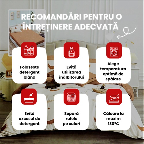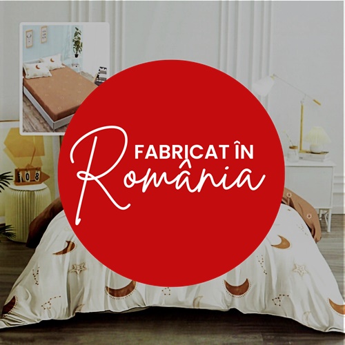 Lenjerie de pat dublu, finet, 6 piese, cearceaf pat cu elastic 180x200cm, cearceaf pilota 200x230cm, 2 fete de perna 50x70 si 2 fete de perna 70x70cm, Pucioasa, RAH180-208