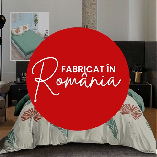 Lenjerie de pat dublu, finet, 6 piese, cearceaf pat cu elastic 180x200cm, cearceaf pilota 200x230cm, 2 fete de perna 50x70 si 2 fete de perna 70x70cm, Pucioasa, RAH180-238