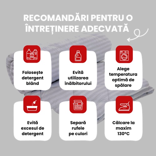 Lana naturala este, de asemenea, hipoalergenica si rezistenta la acarieni, fiind alegerea perfecta pentru persoanele cu alergii sau piele sensibila. In plus, datorita proprietatilor sale antibacteriene naturale, lana previne dezvoltarea microorganismelor, ceea ce contribuie la mentinerea unui mediu curat si sanatos in patul tau.