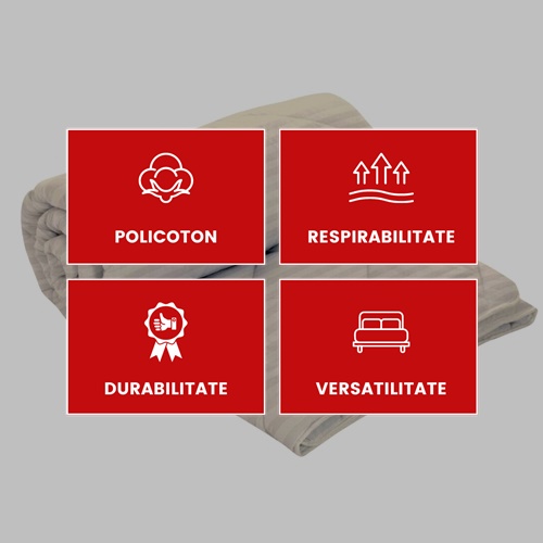 Policottonul este un mix inteligent intre bumbac si poliester, combinand avantajele ambelor materiale. Acest amestec asigura o rezistenta sporita la uzura, dar si o intretinere facila, ceea ce face ca pilota sa fie usor de spalat si de intretinut. Policottonul este cunoscut pentru faptul ca se usuca rapid si nu se sifoneaza usor, mentinand astfel pilota intr-o stare impecabila pentru o perioada lunga de timp.