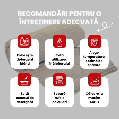 Lana naturala este, de asemenea, hipoalergenica si rezistenta la acarieni, fiind alegerea perfecta pentru persoanele cu alergii sau piele sensibila. In plus, datorita proprietatilor sale antibacteriene naturale, lana previne dezvoltarea microorganismelor, ceea ce contribuie la mentinerea unui mediu curat si sanatos in patul tau.